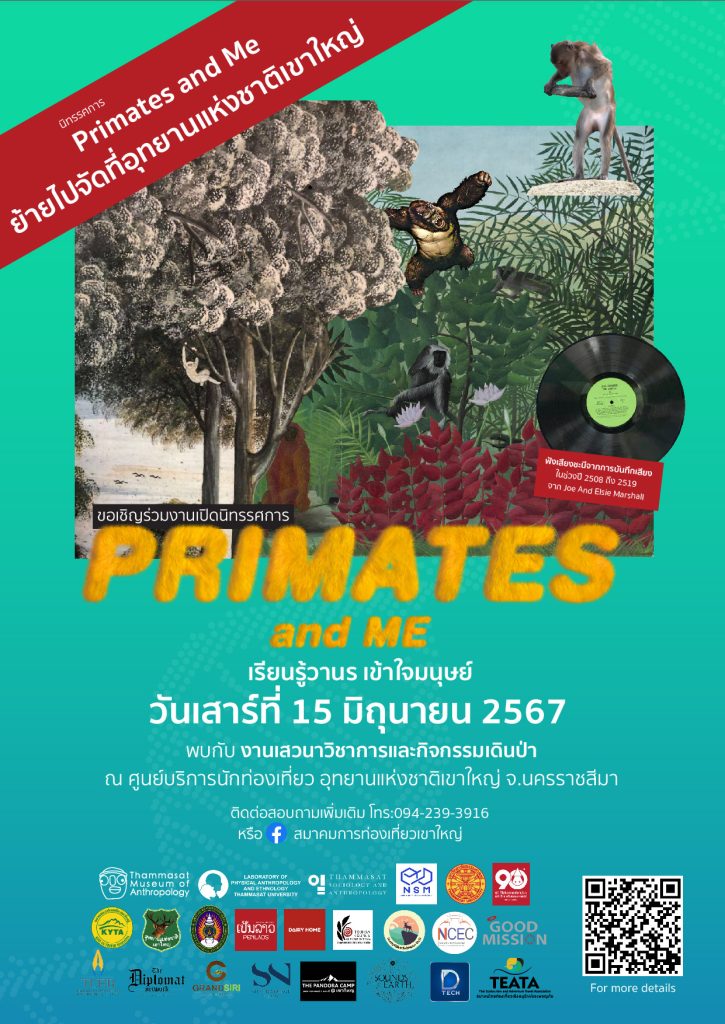 เชิญร่วมงานเปิดนิทรรศการ “ Primates and me เรียนรู้วานร เข้าใจมนุษย์” ณ อุทยานแห่งชาติเขาใหญ่