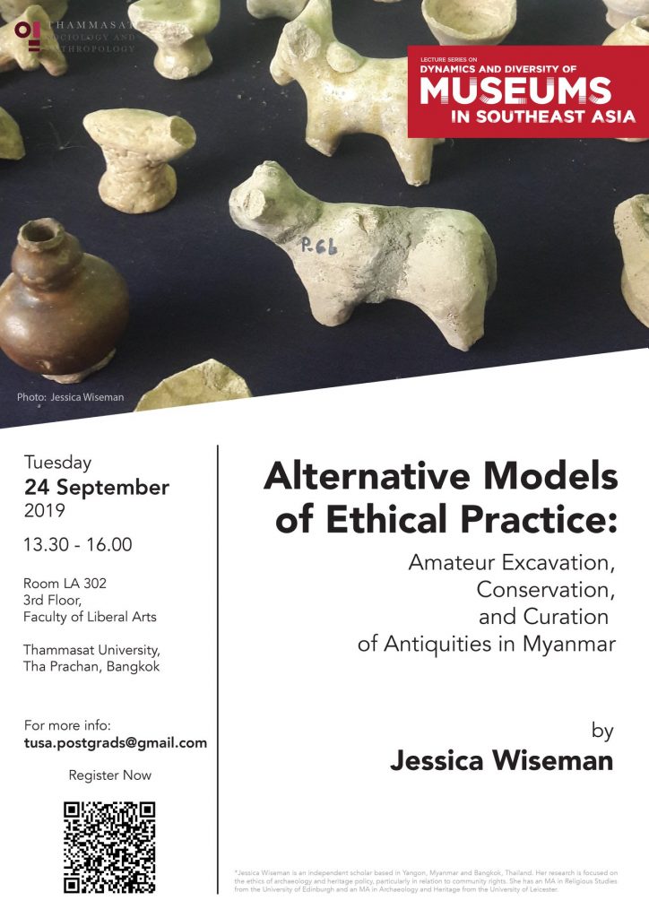 ขอเชิญร่วมฟังการบรรยาย และแลกเปลี่ยนประสบการณ์เกี่ยวกับพิพิธภัณฑ์ในหัวข้อ “Alternative Models of Ethical Practice: Amateur Excavation, Conservation, and Curation of Antiquities in Myanmar”