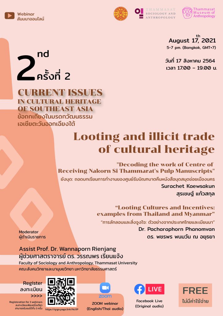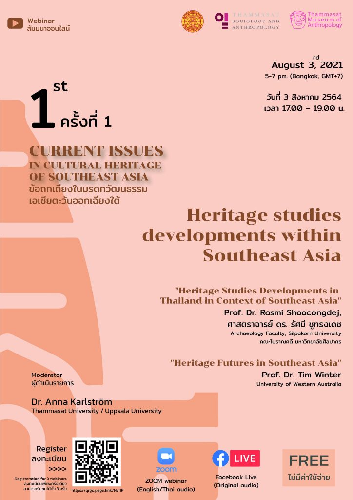 ขอเชิญร่วมงานสัมมนาออนไลน์ ข้อถกเถียงในมรดกวัฒนธรรมเอเชียตะวันออกเฉียงใต้ Current Issues in Cultural Heritage of Southeast Asia