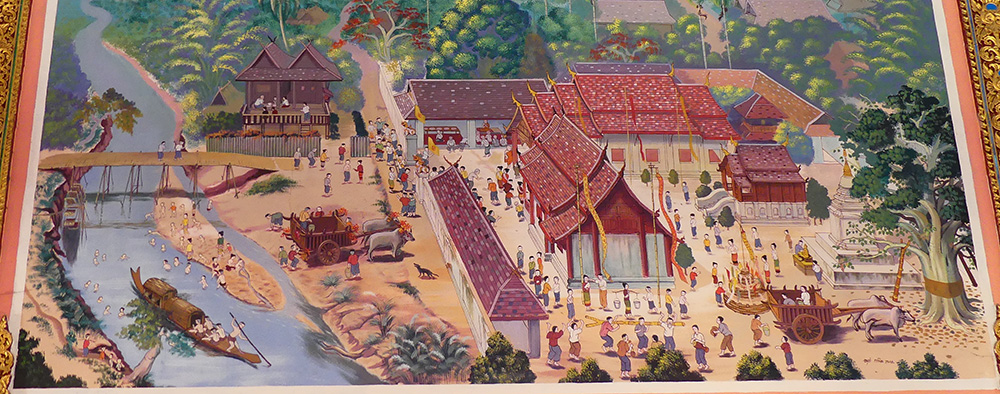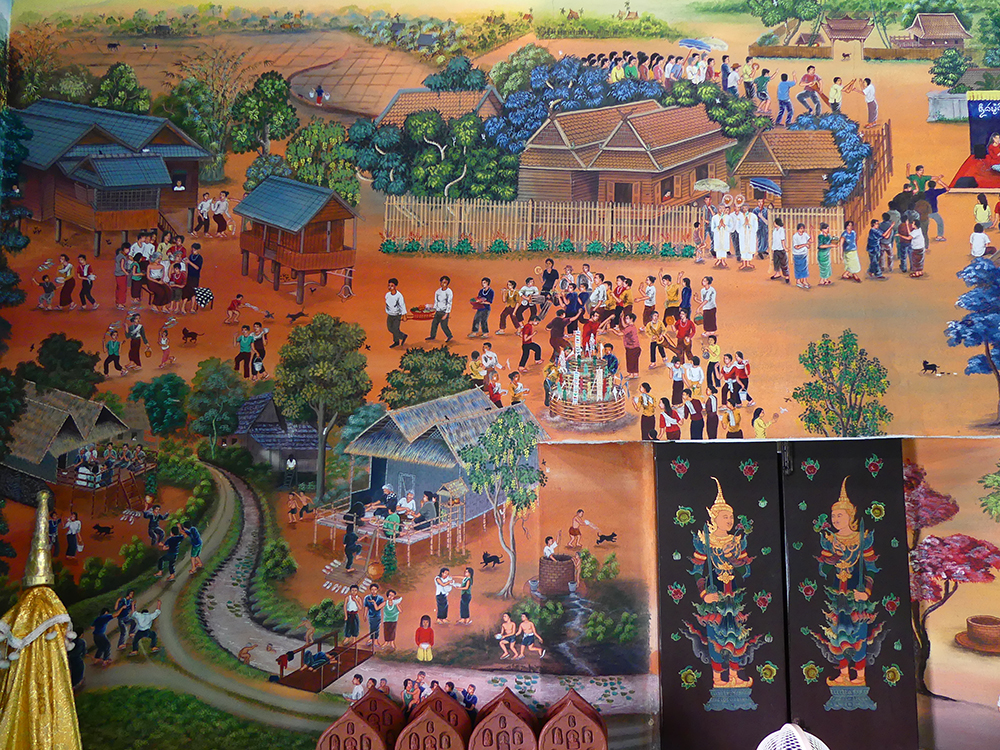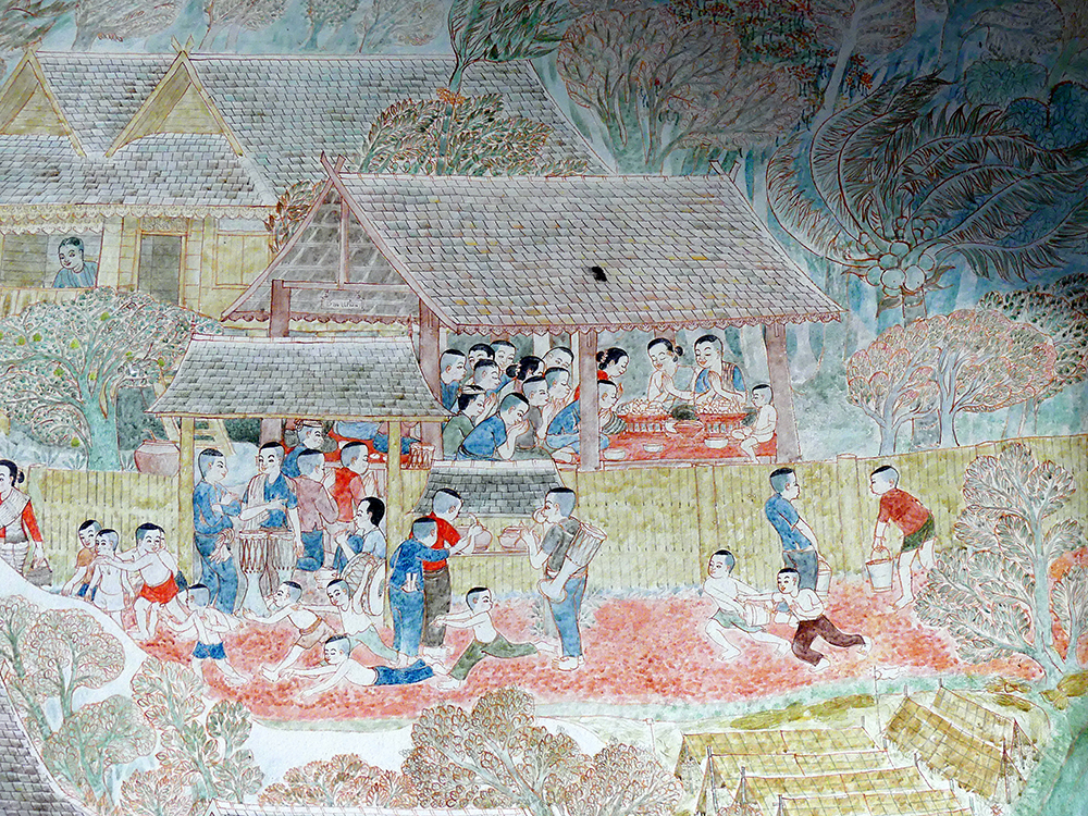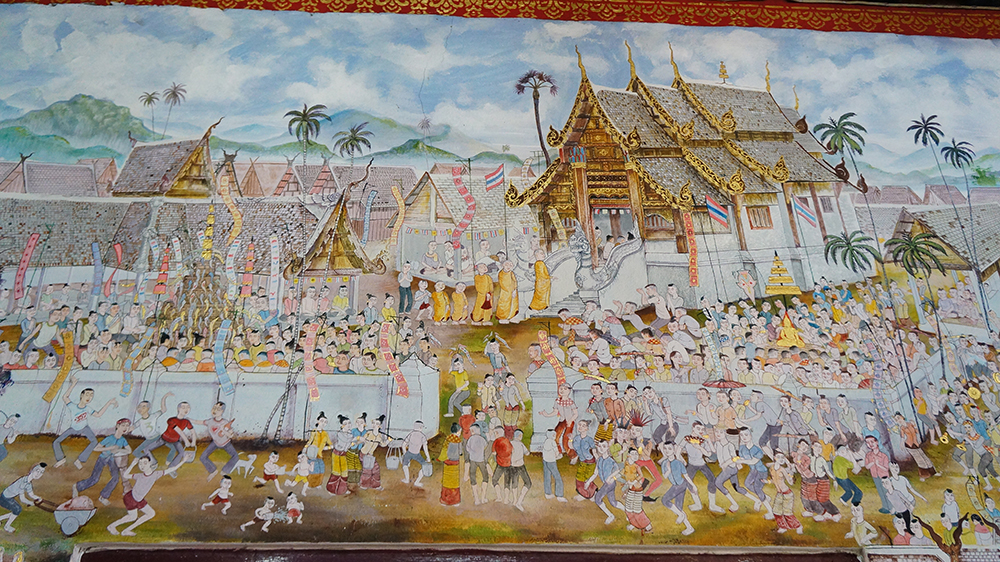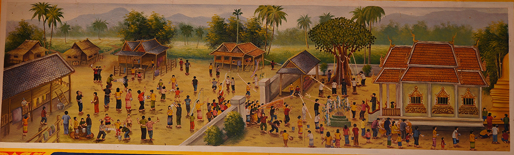 ภาพจิตรกรรมฝาผนัง ประเพณีสงกรานต์-ปีใหม่เมือง ใน จ.เชียงใหม่ จากคลังภาพจิตรกรรมฝาผนัง: อู่ทอง ประศาสน์วินิจฉัย