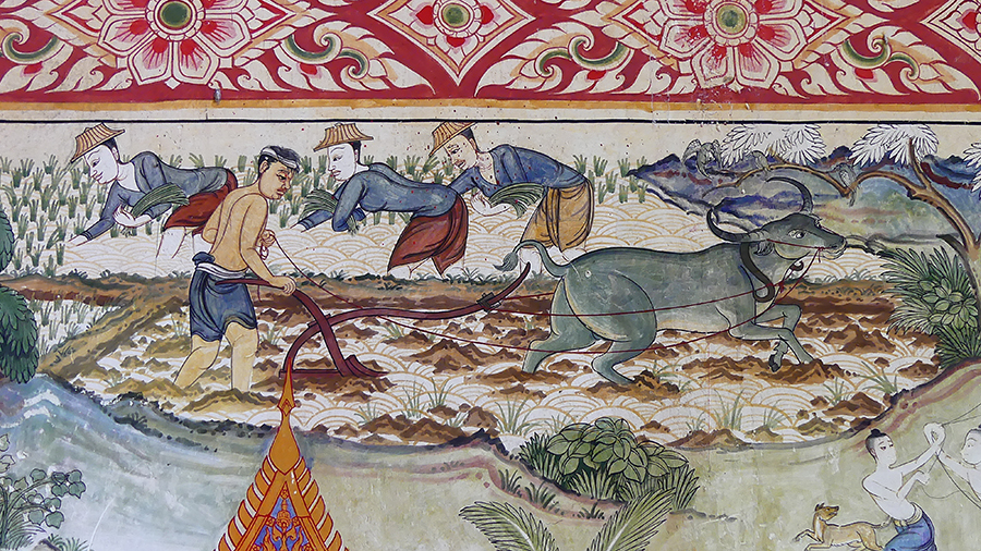 ภาพจิตรกรรมฝาผนัง พิธีจรดพระนังคัลแรกนาขวัญ และวิถีชีวิตการเกษตร จากคลังภาพจิตรกรรมฝาผนัง: อู่ทอง ประศาสน์วินิจฉัย