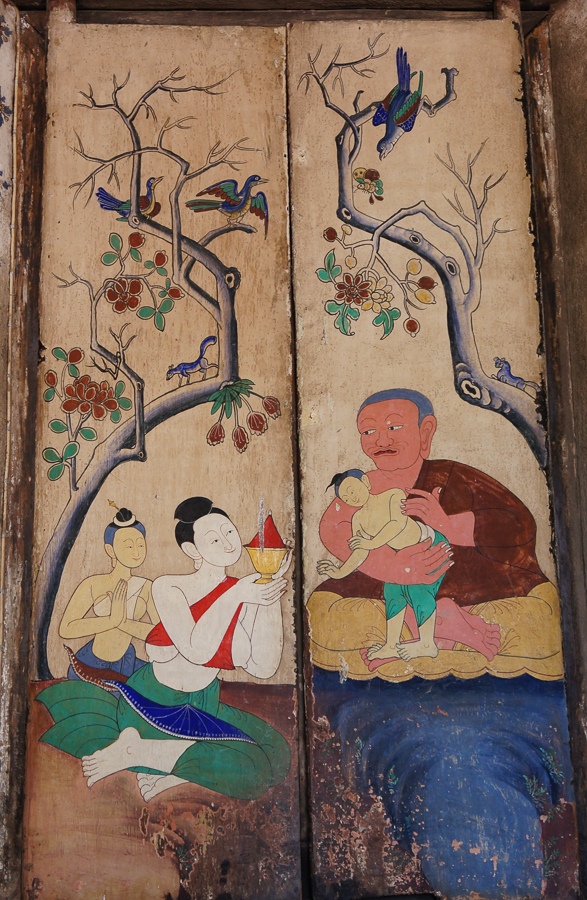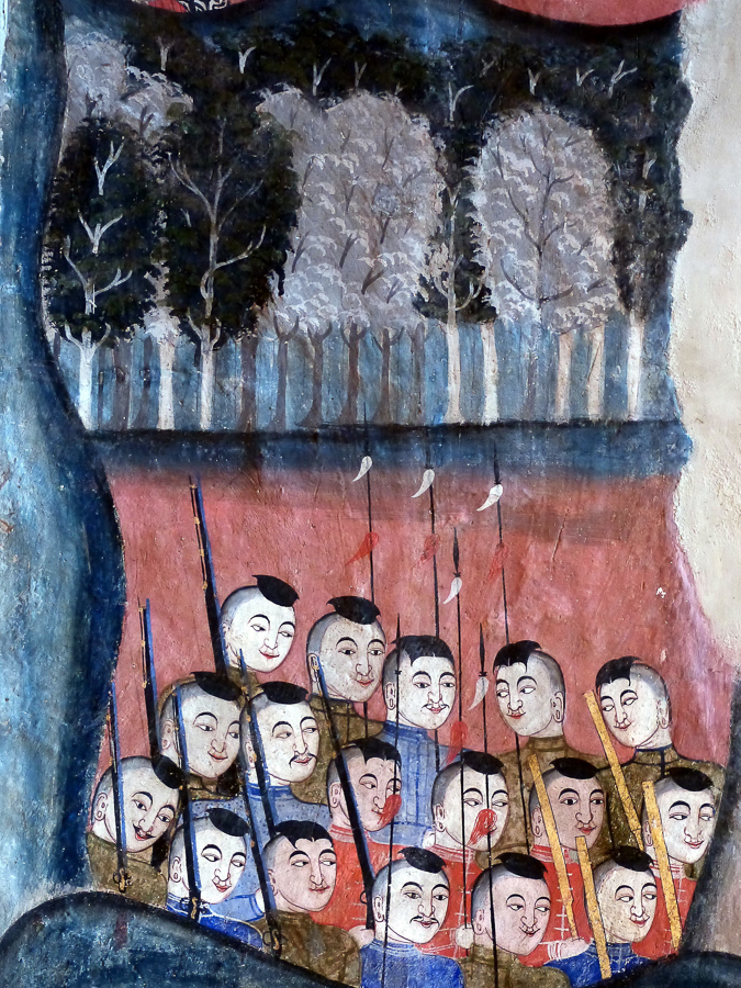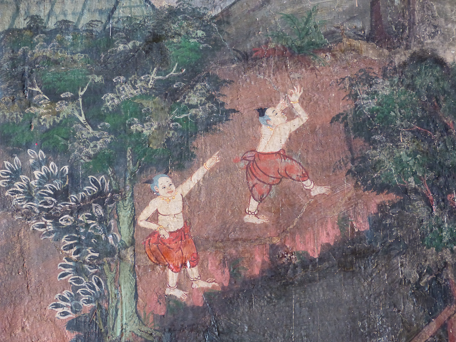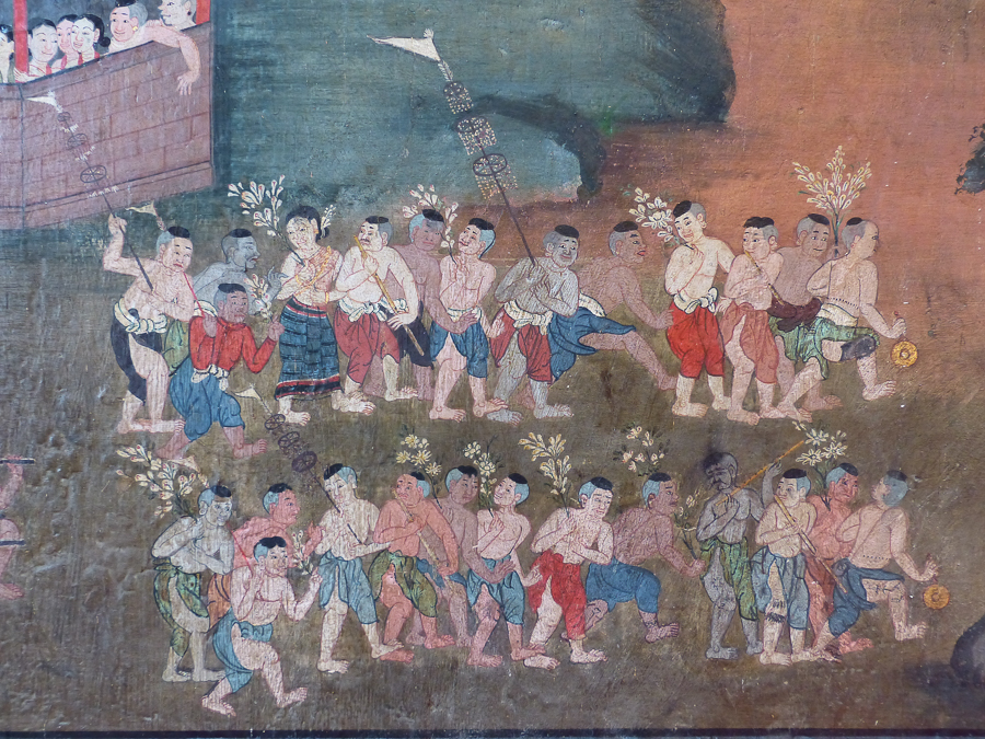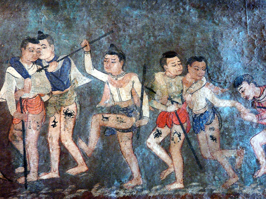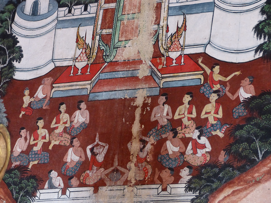 ภาพจิตรกรรมฝาผนัง เรื่องทรงผม จากคลังภาพจิตรกรรมฝาผนัง: อู่ทอง ประศาสน์วินิจฉัย