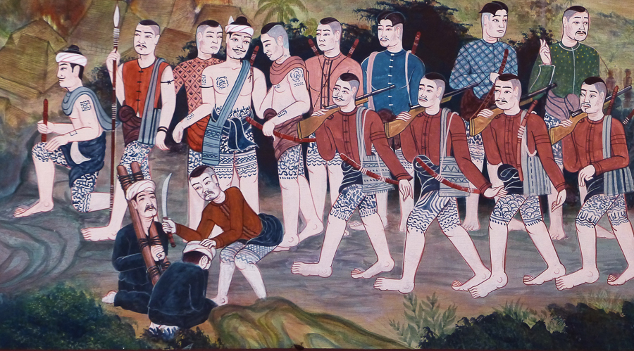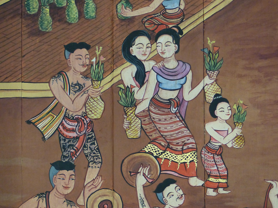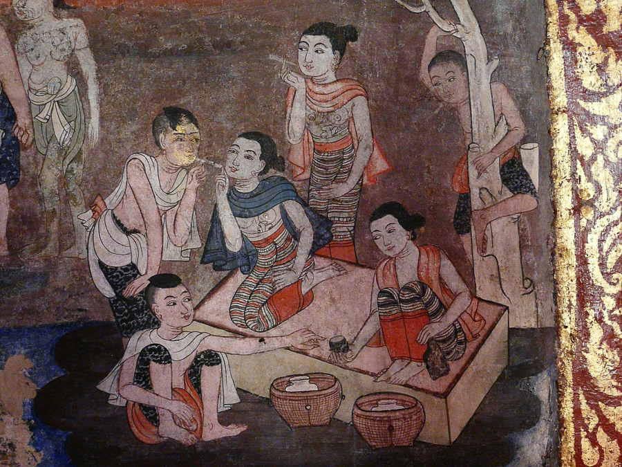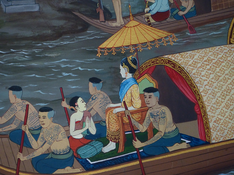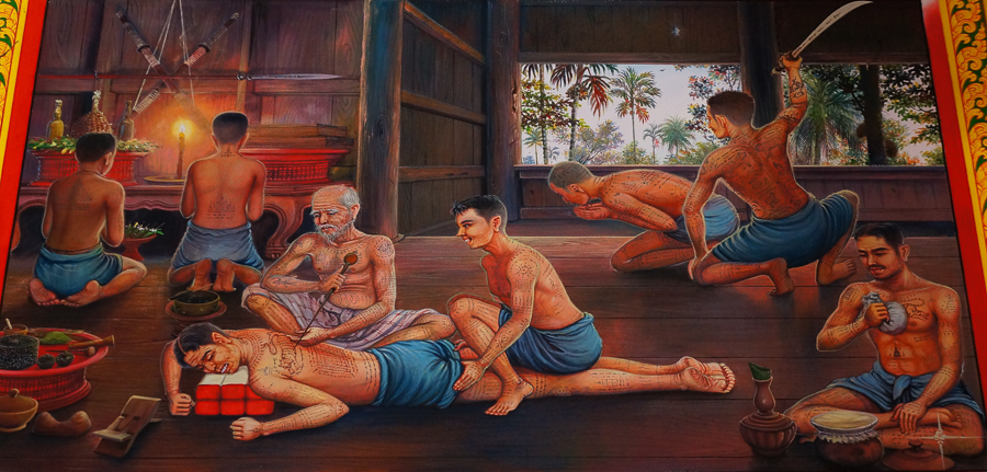 ภาพจิตรกรรมฝาผนัง เรื่องการสัก จากคลังภาพจิตรกรรมฝาผนัง: อู่ทอง ประศาสน์วินิจฉัย