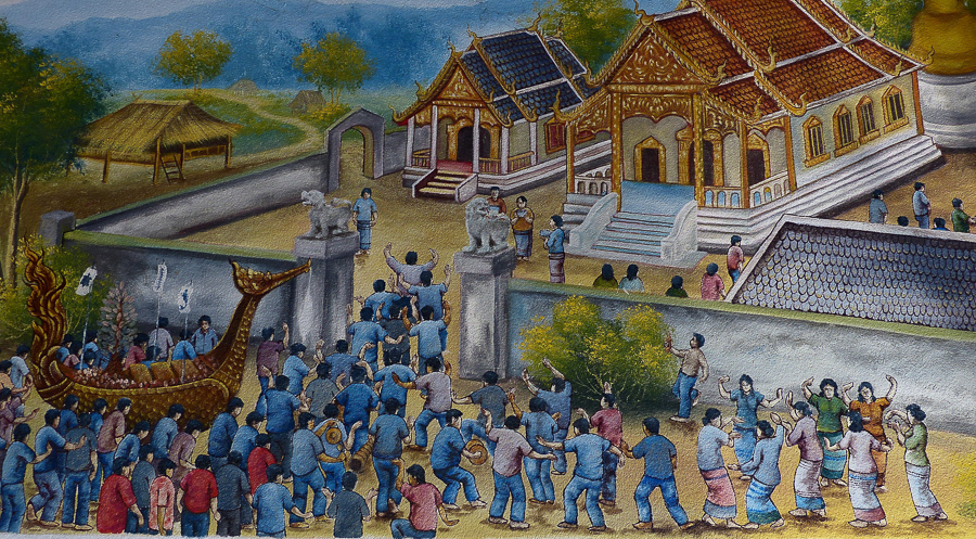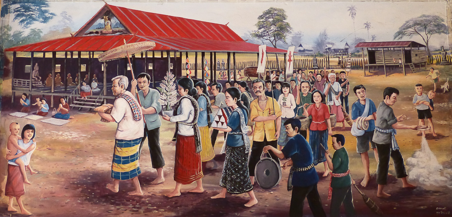 ภาพจิตรกรรมฝาผนัง งานทอดกฐิน จากคลังภาพจิตรกรรมฝาผนัง: อู่ทอง ประศาสน์วินิจฉัย