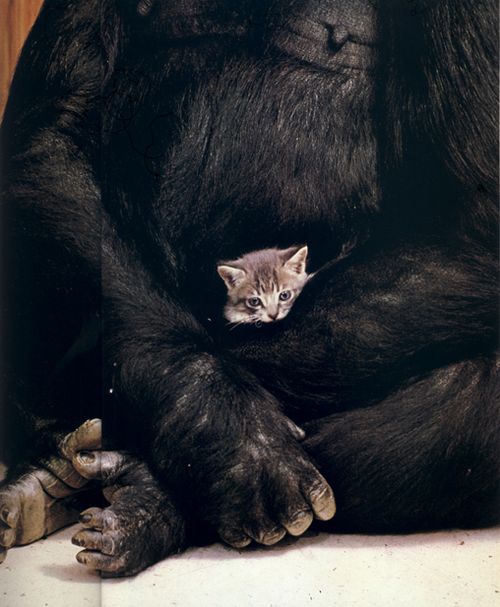 ดร.เพนนี แพทเทอสัน (Penny Patterson) นักจิตวิทยาสัตว์ชาวอเมริกัน กำลังสนทนากับโกโก้ด้วยภาษามือแบบอเมริกัน ซึ่งเธอเรียกว่า ภาษามือกอริลลา (Gorilla Sign Language-GSL) ช่วง พ.ศ. 2515