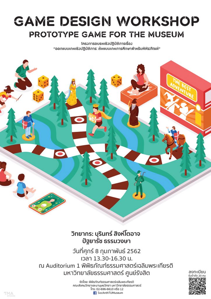ขอเชิญผู้ที่สนใจเข้าร่วมโครงการอบรมเชิงปฏิบัติการเรื่อง “ออกแบบเกมเชิงปฏิบัติการ: ต้นแบบเกมการศึกษาสำหรับพิพิธภัณฑ์” (Game Design Workshop: Prototype game for the museum)
